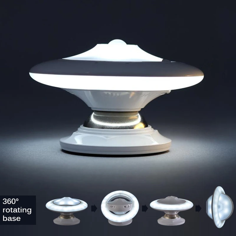 USB Rechargeable Motion Sensor Night Light UFO Infrared Human Body Induction 360 Degree Rotation In